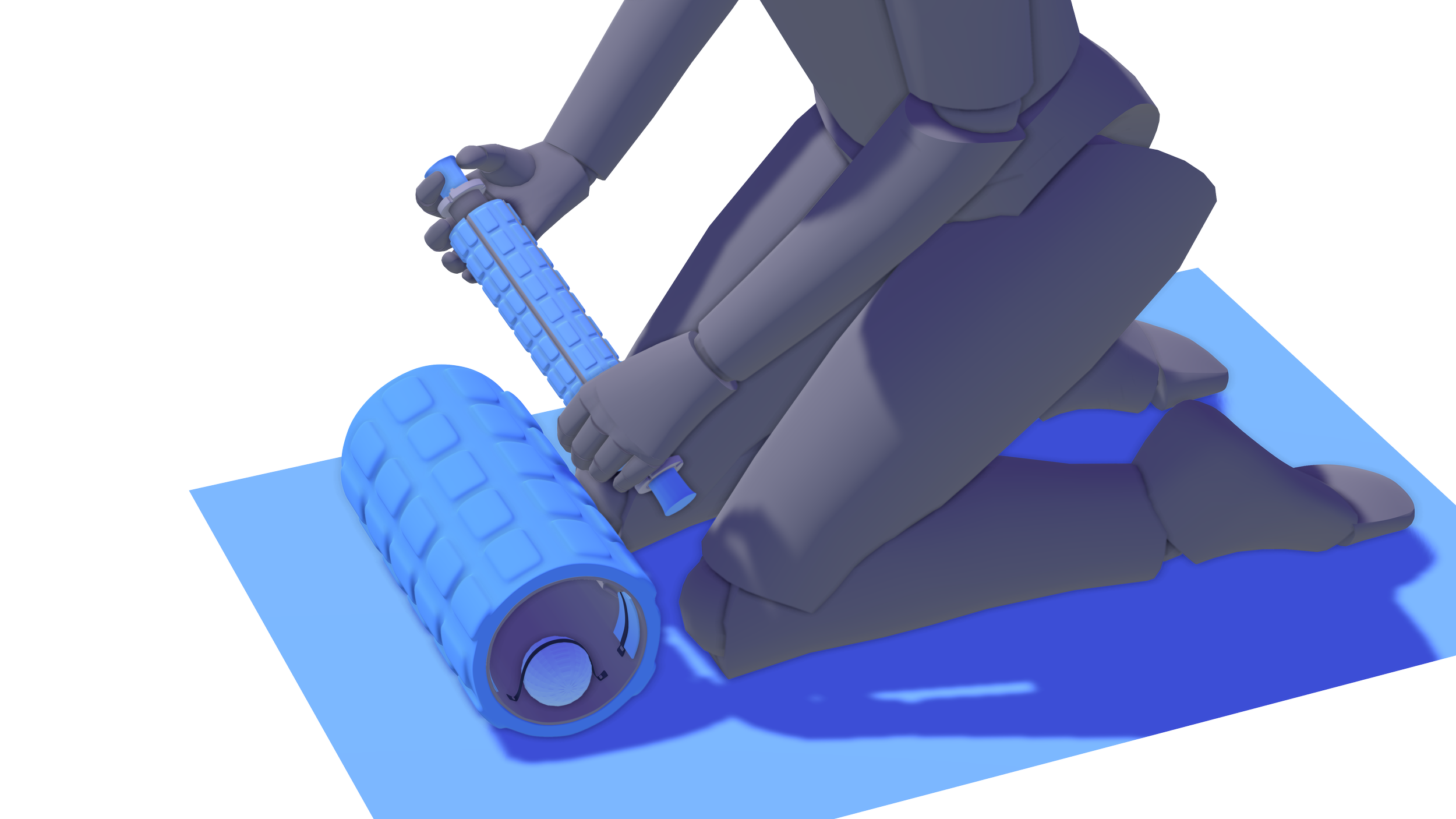 After running through different variations, I decided to have both the massage ball and resistance band(s) be stored with their own respective band. The massage stick would slot in on its own respective track running from within the foam roller.